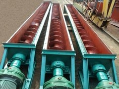 螺旋输送机是一种利用电机带动螺旋回转,推移物料以实现输送目的的机械。它能水平、倾斜或垂直输送,具有结构简单、横截面积小、密封性好、操作方便、维修容易、便于封闭运输等优点。螺旋输送机在输送形式上分为有轴螺旋输送机和无轴螺旋输送机两种,在外型上分为U型螺旋输送机和管式螺旋输送机。有轴螺旋输送机适用于无粘性的干粉物料和小颗粒物料.(例如:水泥、粉煤灰、石灰、粮等)而无轴螺旋输送机适合输送机由粘性的和易缠绕的物料。(